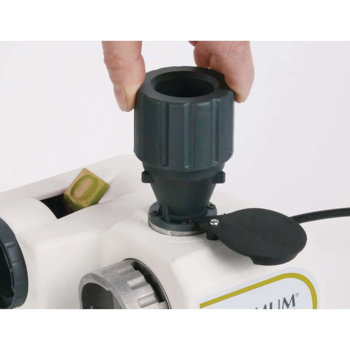 - Le réaffûtage s’effectue en 3 étapes, à l’aide du mandrin porte-outil et via les différentes ouvertures de l’affûteuse (chacune d’elles permet un travail différent)