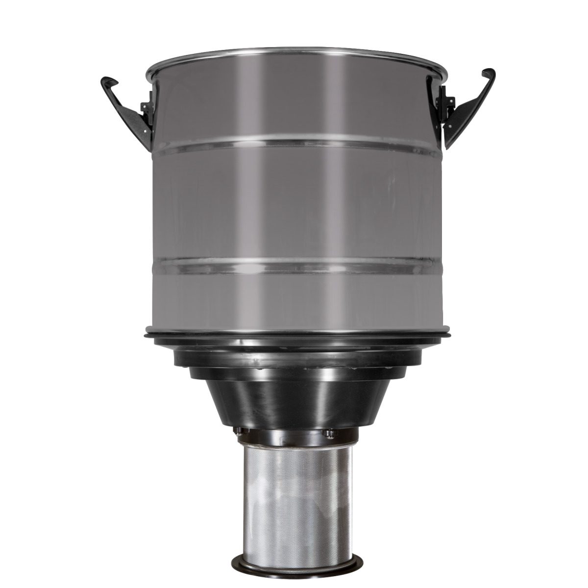 - Un bac de séparation avec tamis à huile se trouve entre la cuve et la tête d’aspiration