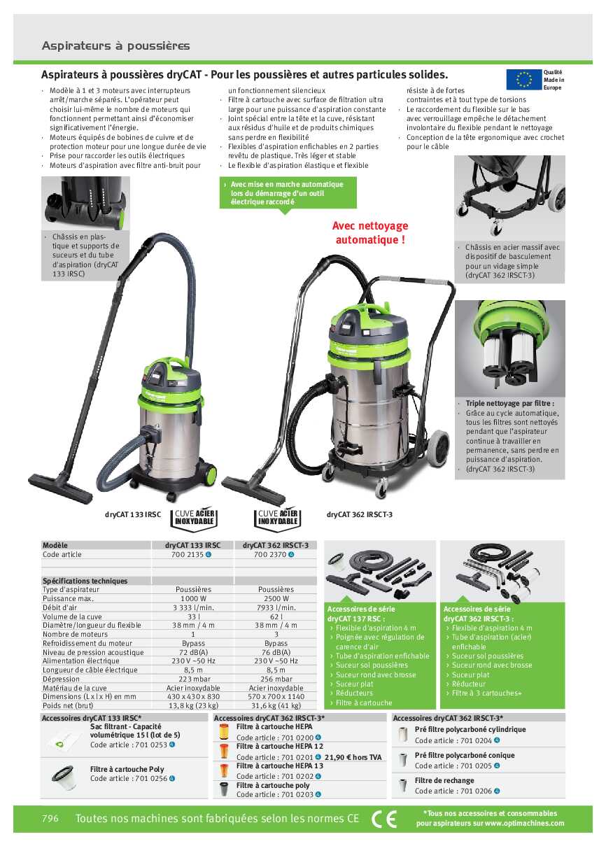 Aspirateurs à poussières dryCAT 133 IRSC – Pour les poussières et autres particules solides.