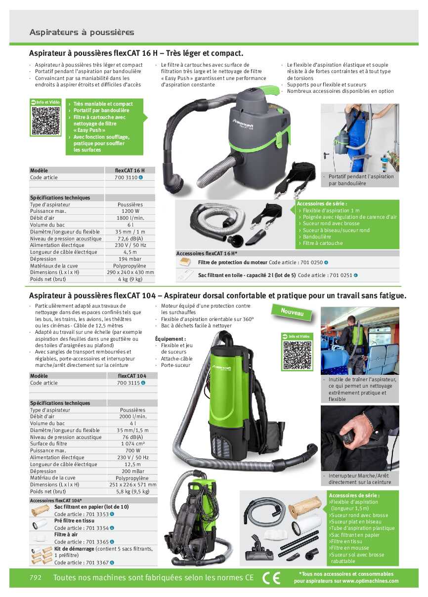 Aspirateur à poussières flexCAT 104 – Aspirateur dorsal confortable et pratique pour un travail sans fatigue.