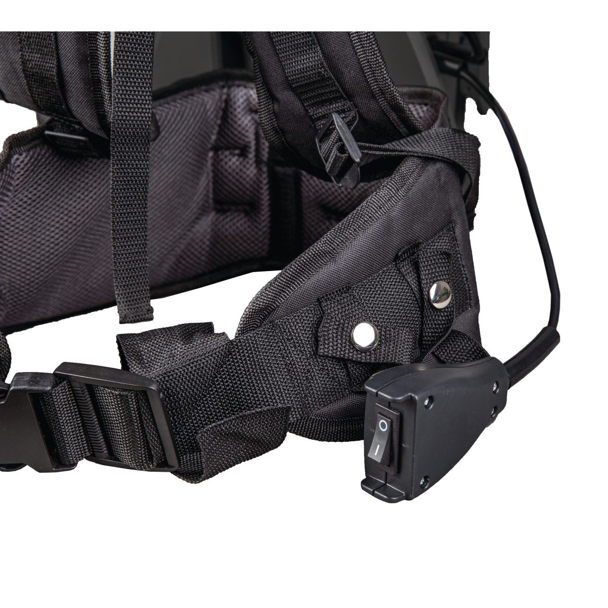 - Avec sangles de transport rembourrées et réglables, porte-accessoires et interrupteur marche/arrêt directement sur la ceinture