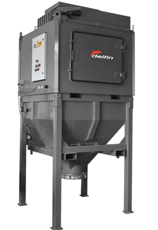 Aspirateur industriel mobile très puissant avec pompe à lobes et monté sur trémie.