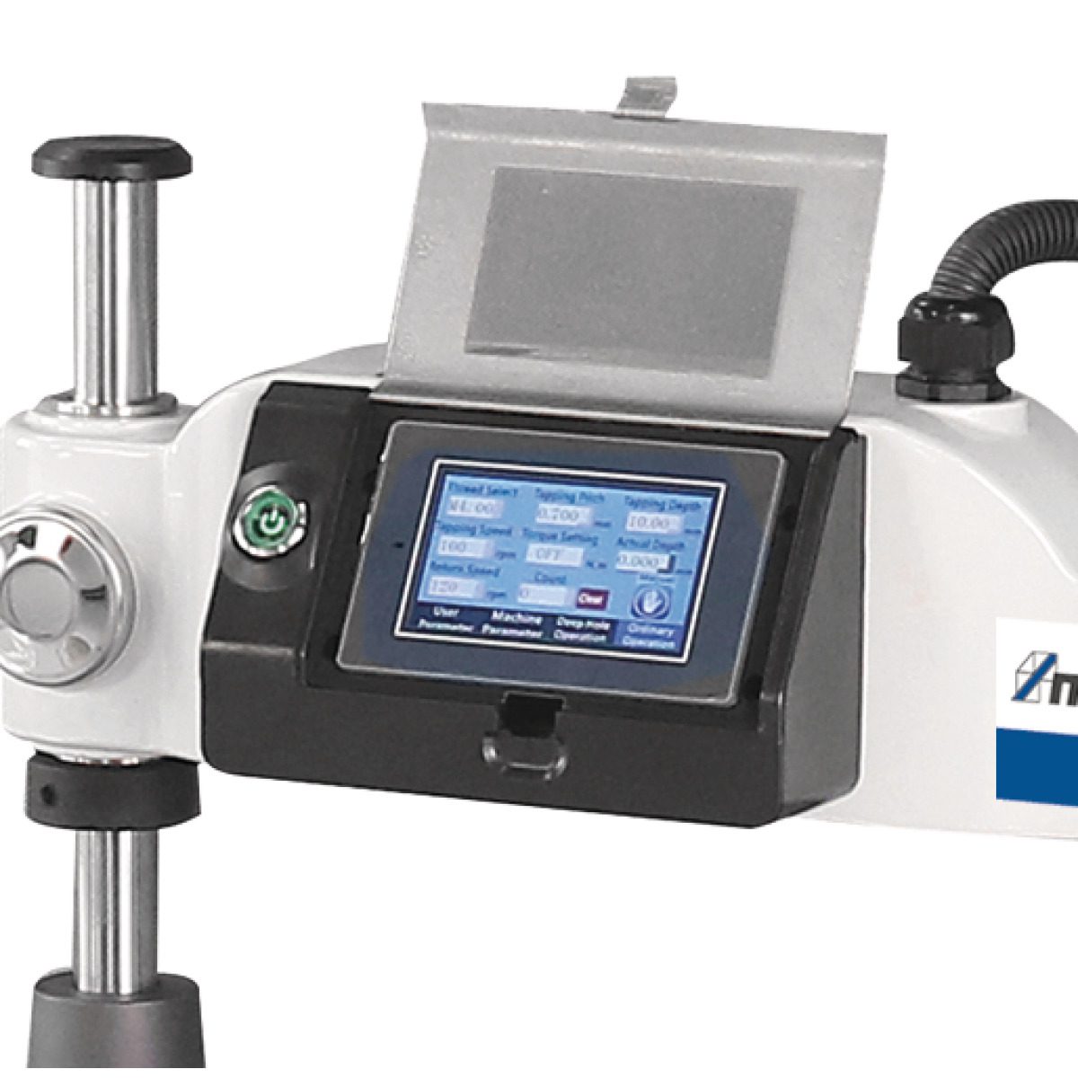 - Mode manuel : après avoir atteint la profondeur de taraudage définie, la broche s’arrête automatiquement, l‘inversion s‘effectue manuellement