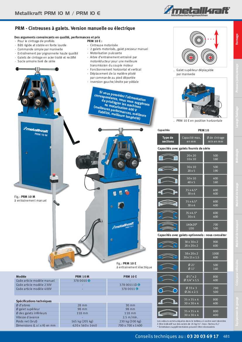Spécification: Cintreuse manuelle à galets Metallkraft PRM 10 M