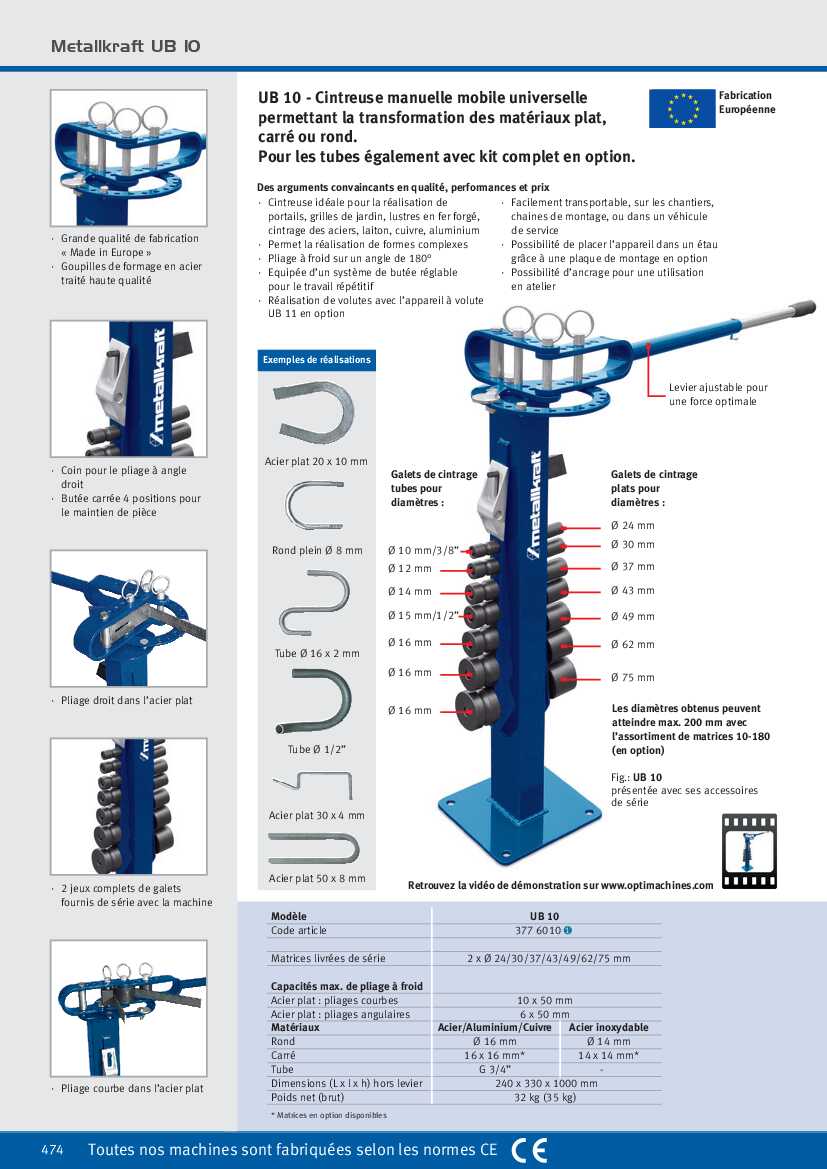 Spécification: Cintreuse universelle mobile Metallkraft UB 10