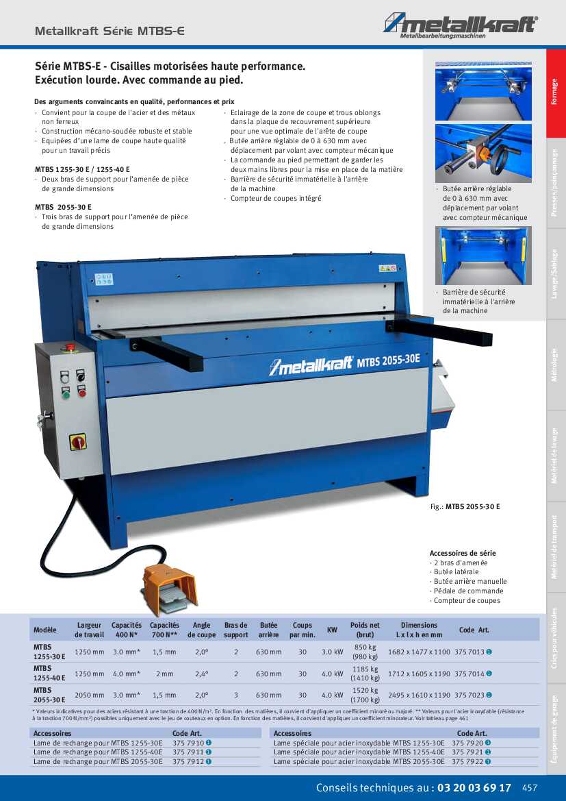 Spécification: Cisaille électrique Metallkraft MTBS 1255-40 E