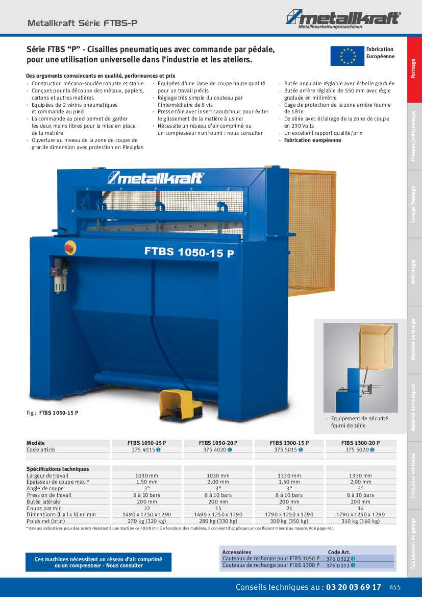 Spécification: Cisaille pneumatique Metallkraft FTBS 1050-20 P
