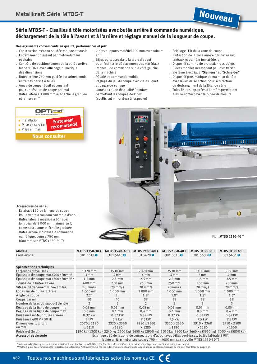 Spécification: Cisailles à tôle motorisée Metallkraft MTBS 1350-30 T