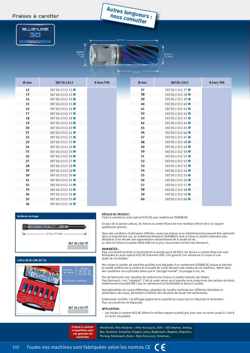 Spécification: Coffret de fraises à carotter HSS-XEMetallkraft Blue…