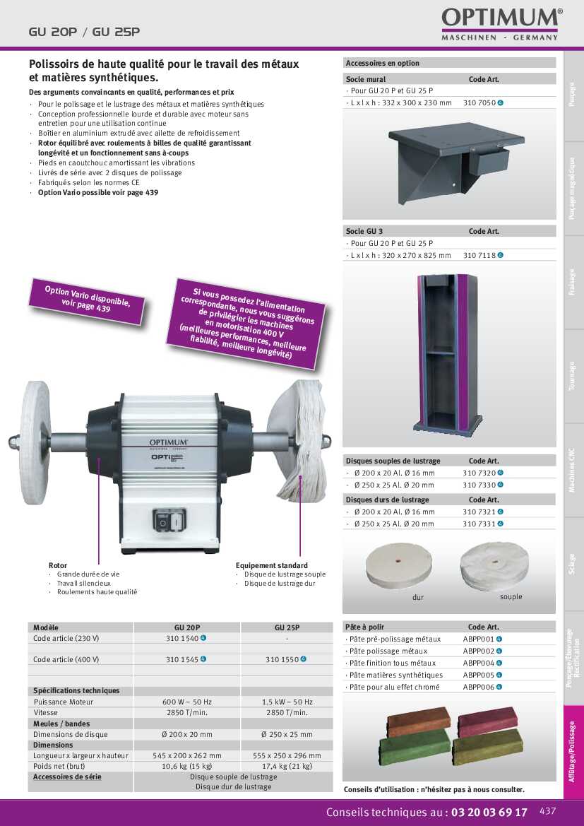 Spécification: Combiné touret meule / bande Optimum GU 25S