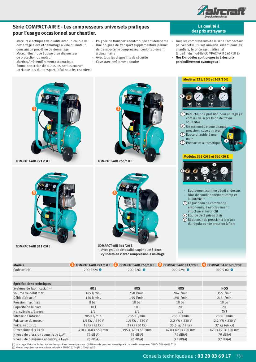 - Tous les compresseurs de la série Compact-Air peuvent être utilisés universellement pour les chantiers, le bricolage, l’artisanat