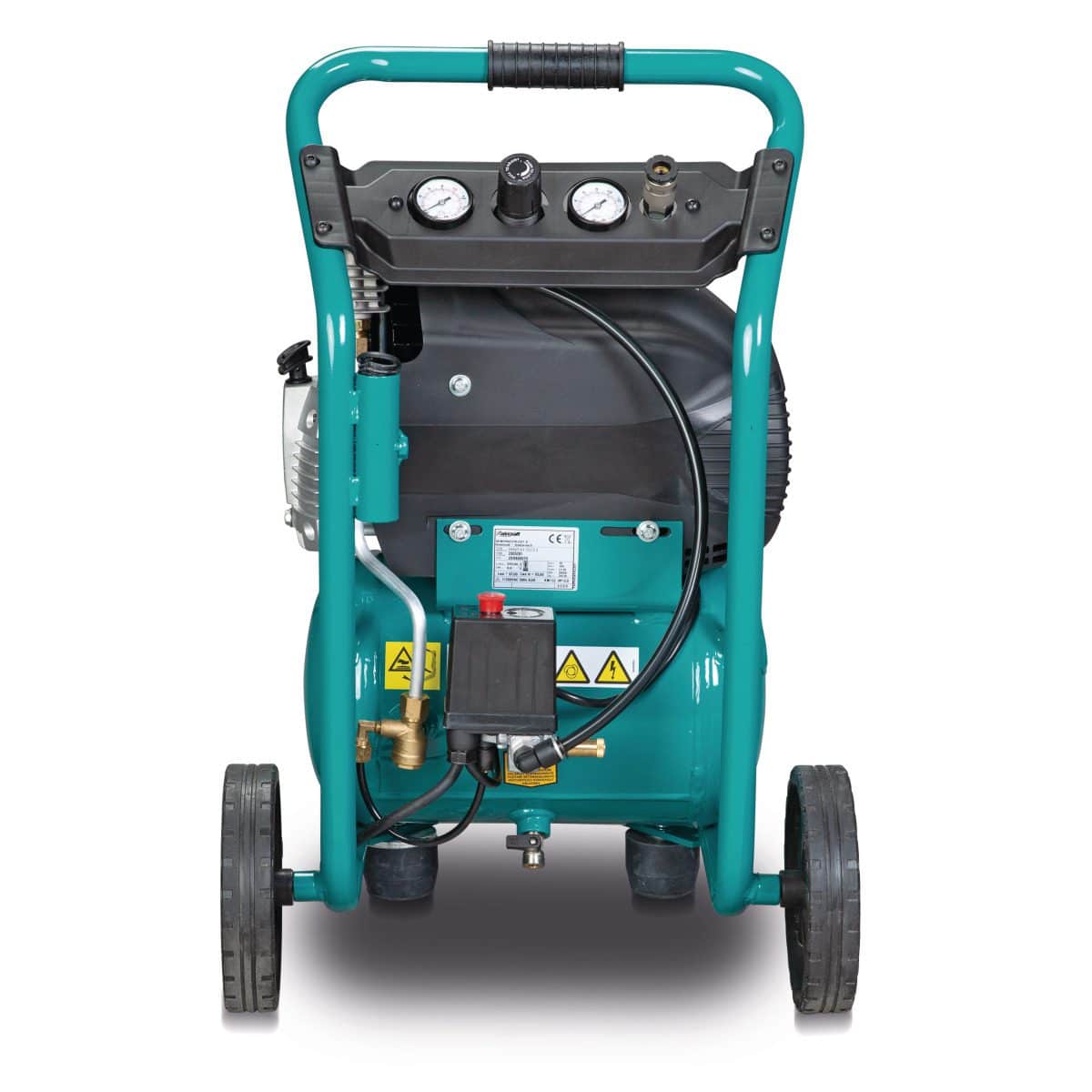 - Une poignée de transport supplémentaire permet de transporter le compresseur confortablement à deux mains