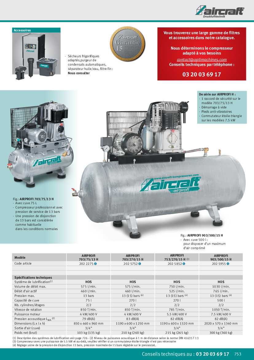 Spécification: Compresseur Aircraft Airprofi 753/270/15 H