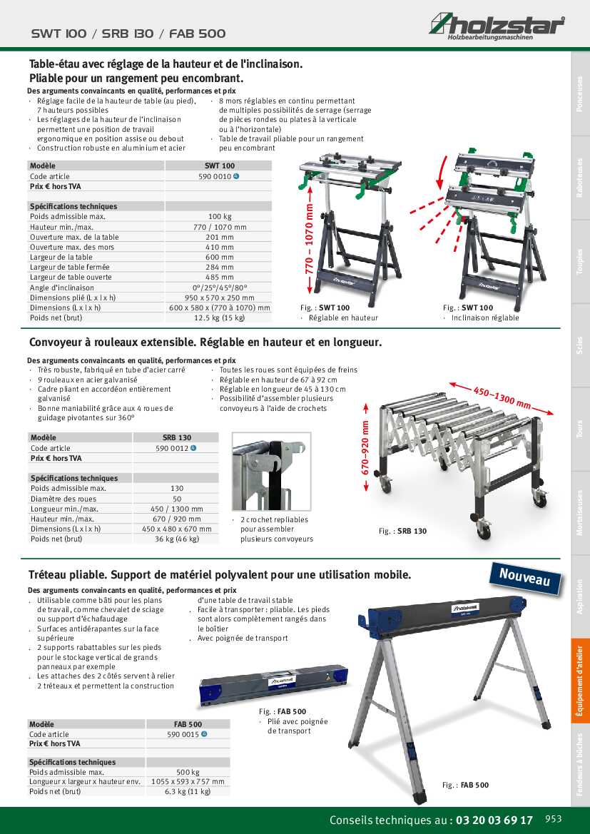 Spécification: Convoyeur à rouleaux extensible Holzstar SRB 130