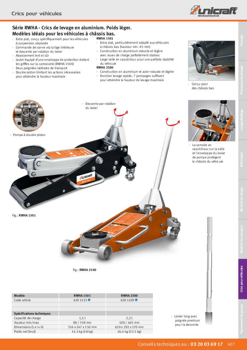 Spécification: Crics pour véhicules Unicraft Cric de levage en alu RWHA 2500