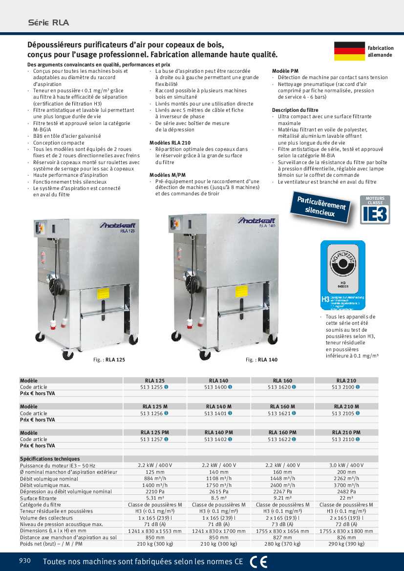 - Teneur en poussière < 0.1 mg/m3 grâce au filtre à haute efficacité de séparation (certification de filtration H3)