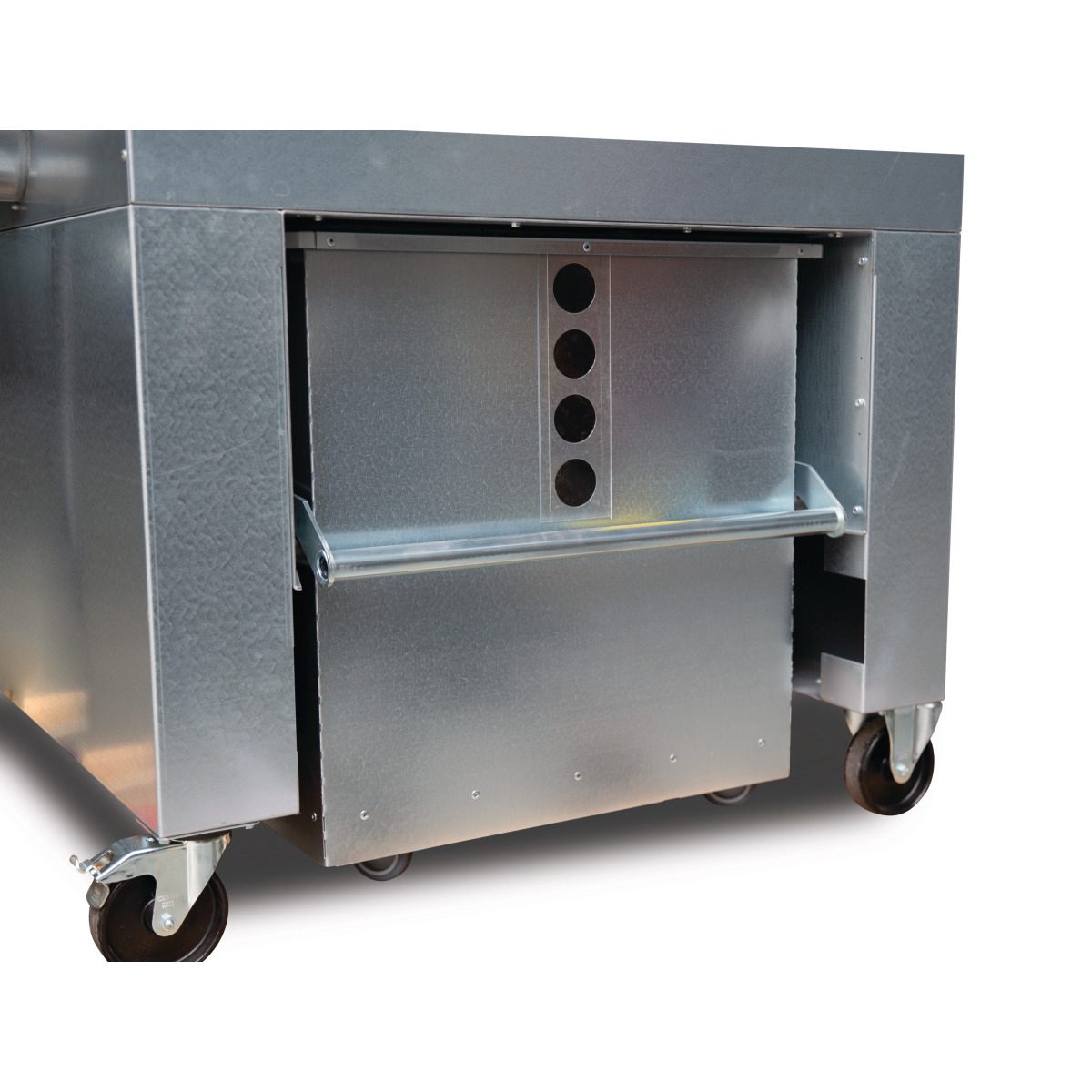 - Réservoir à copeaux monté sur roulettes avec système de serrage pour les sac à copeaux