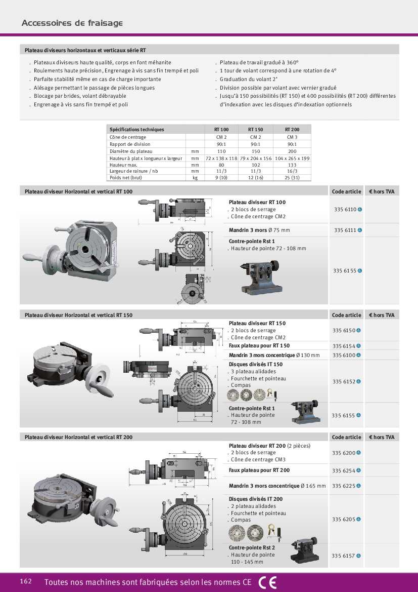 Spécification: Disques indexeurs avec alidades IT 200 pour plateau diviseur RT200 et RTU165