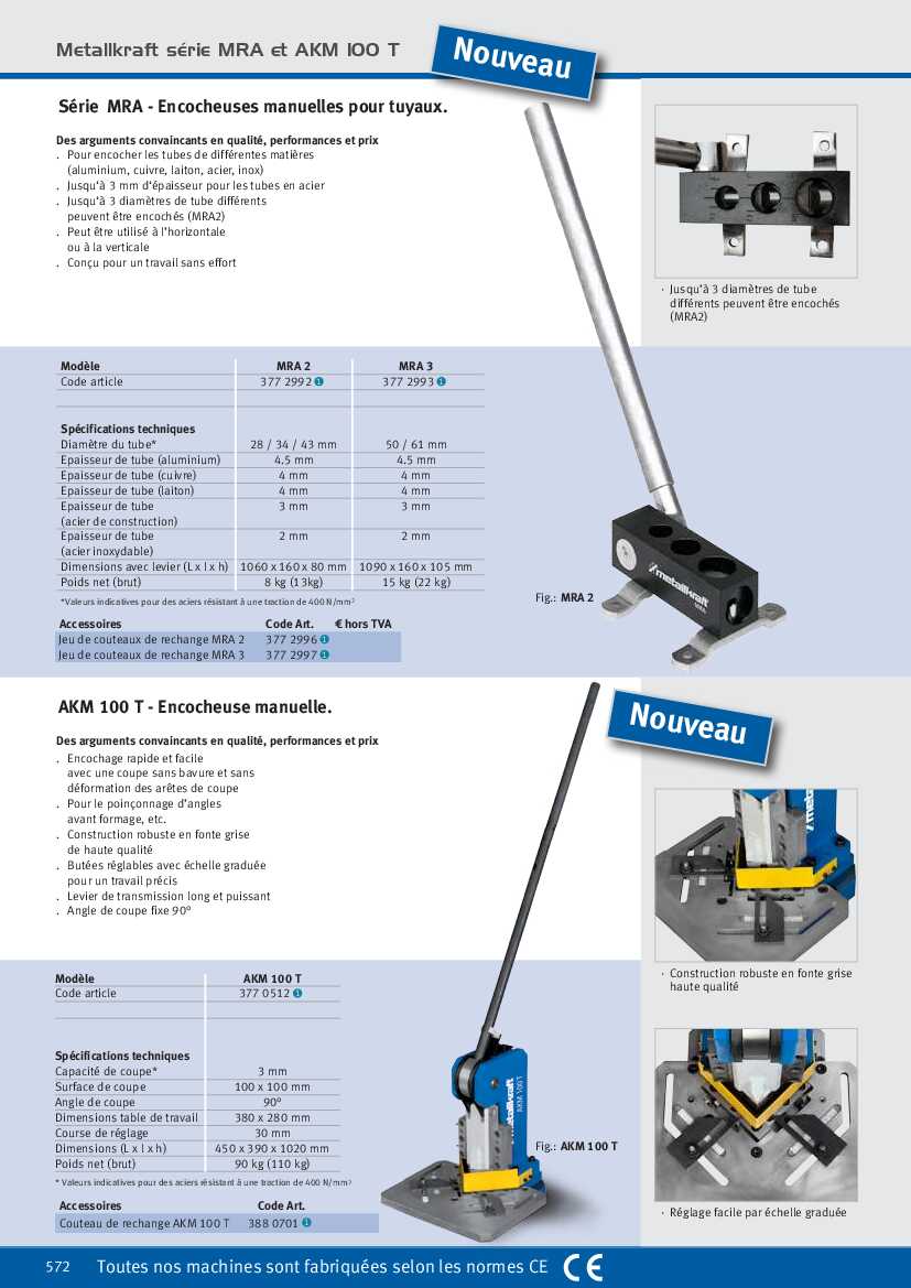 Spécification: Encocheuse manuelle Metallkraft AKM 100 T