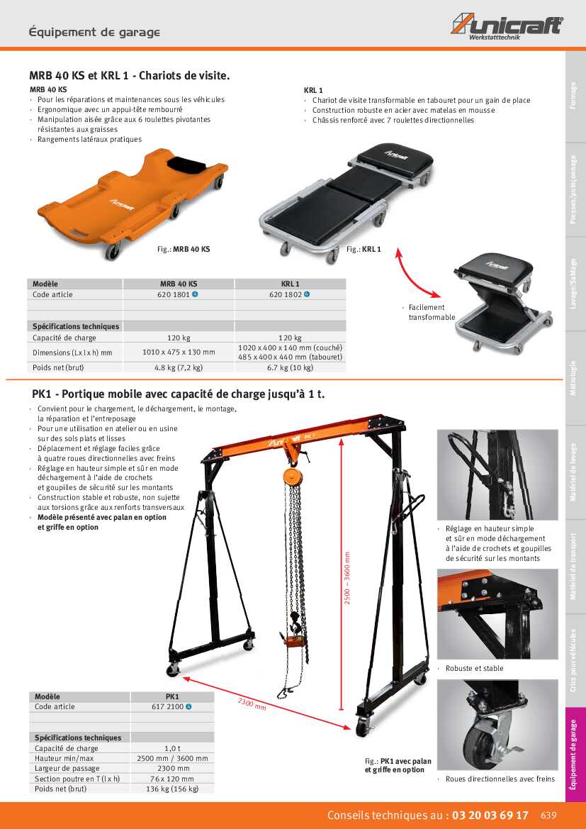 Spécification: Equipement de garage Unicraft Portique mobile PK1