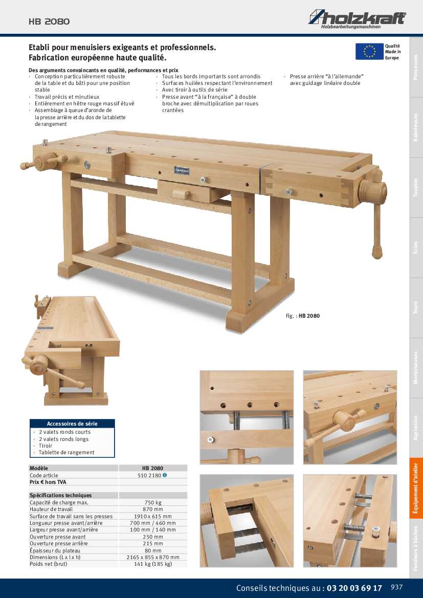Spécification: Etabli d’atelier Holzkraft HB 2080