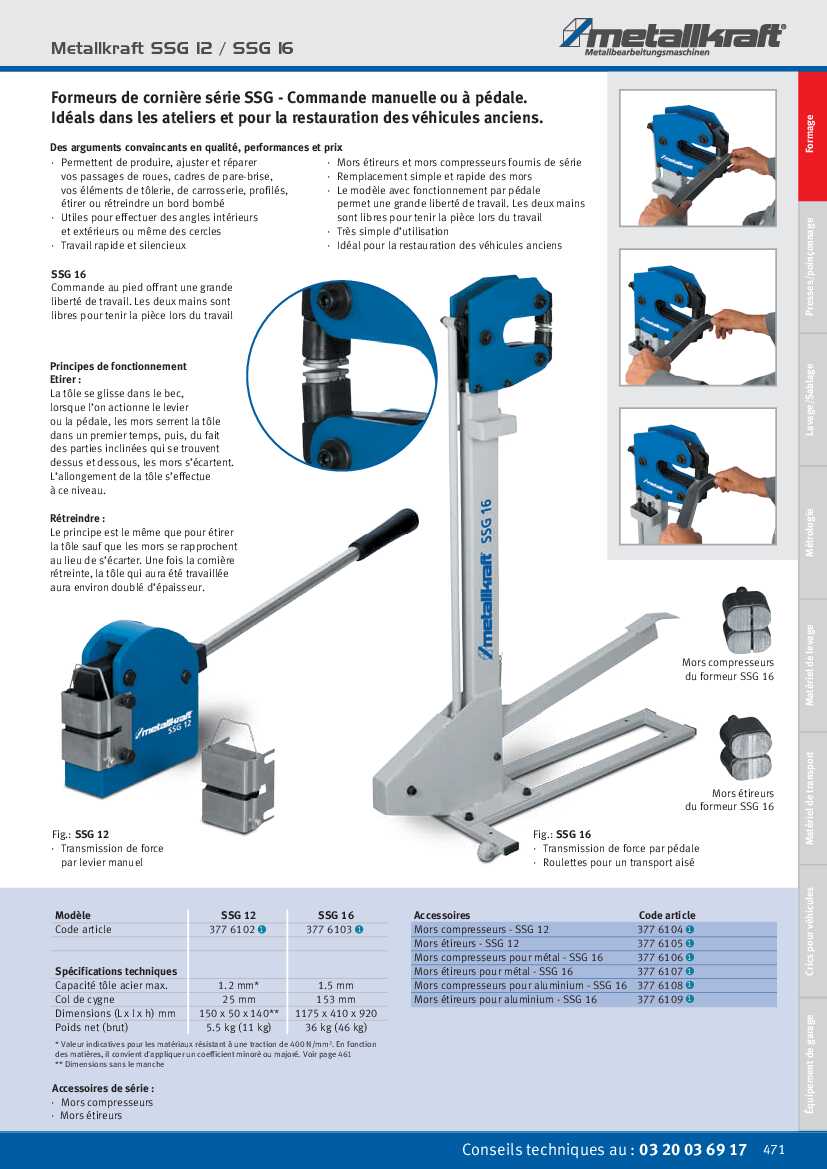 Formeur de cornière série SSG – Commande manuelle. Idéal dans les ateliers et pour la restauration des véhicules anciens.