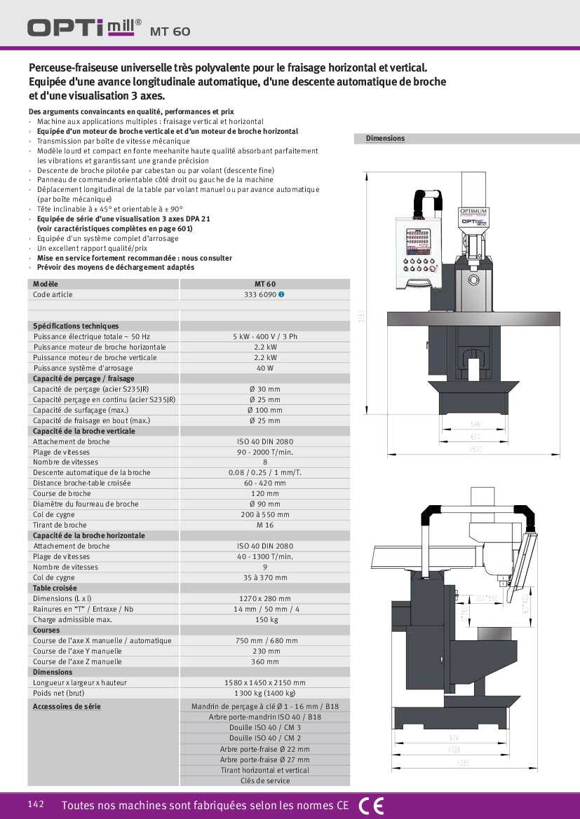 Perceuse-fraiseuse universelle très polyvalente pour le fraisage horizontal et vertical. Équipée d’une avance longitudinale automatique, d’une descente automatique de broche et d’une visualisation 3 axes. Ajustement motorisé de la hauteur de table
