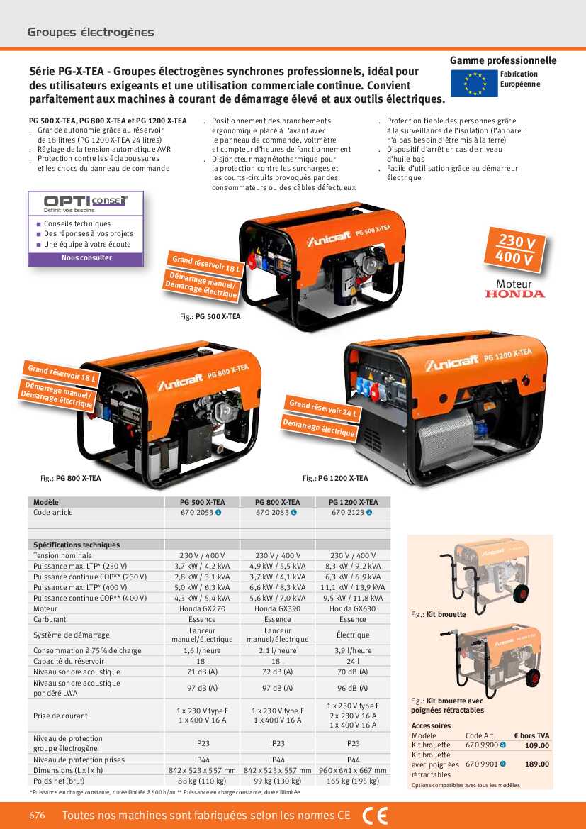 Spécification: Groupe électrogène Unicraft PG 500 X-TEA