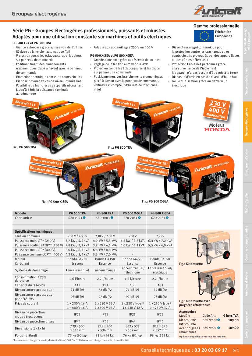 Spécification: Groupe électrogène Unicraft PG 800 X-SEA