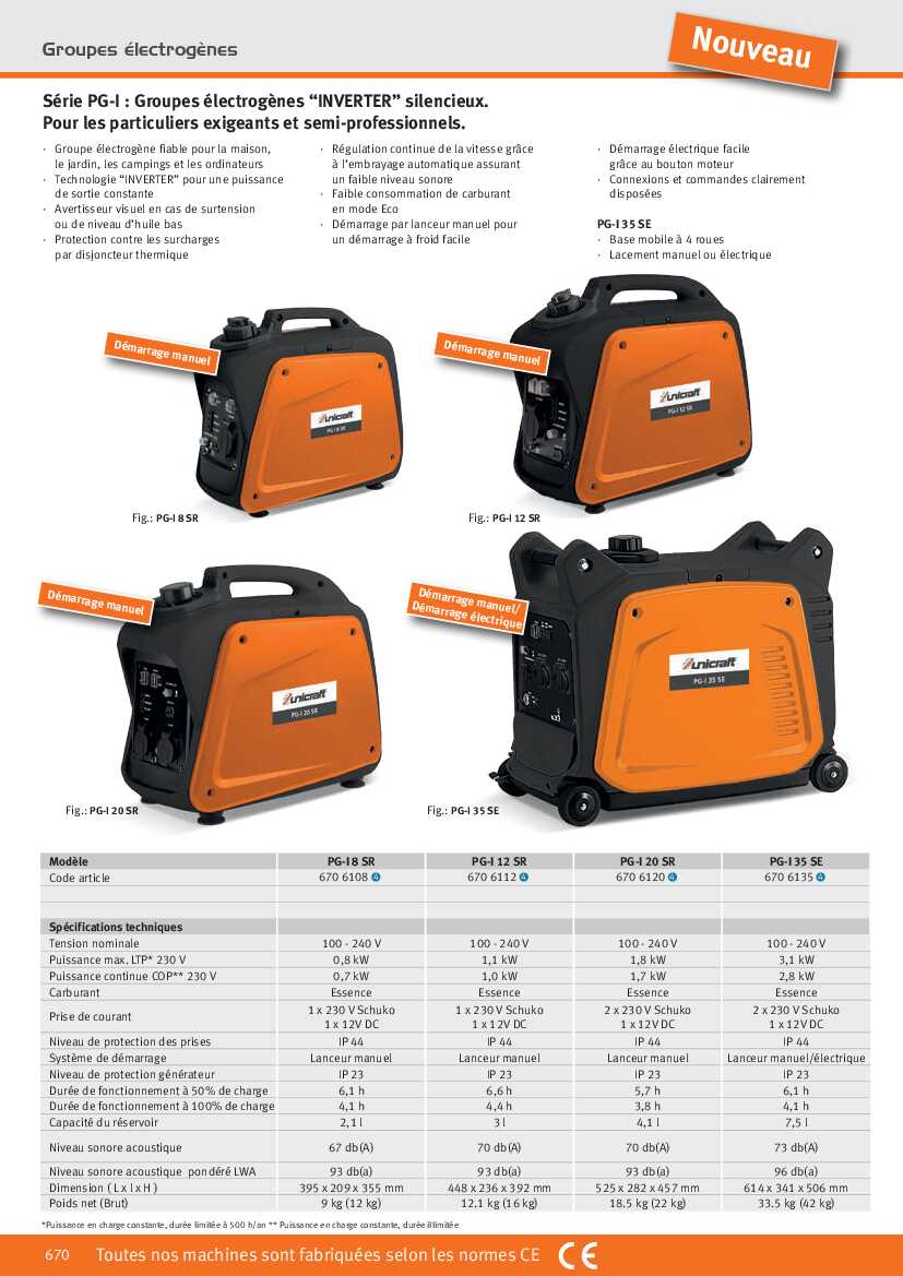 - Technologie “INVERTER” pour une puissance de sortie constante
