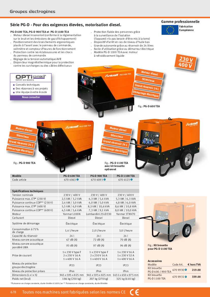 Spécification: Groupe électrogène Unicraft PG-D 1100 TEA