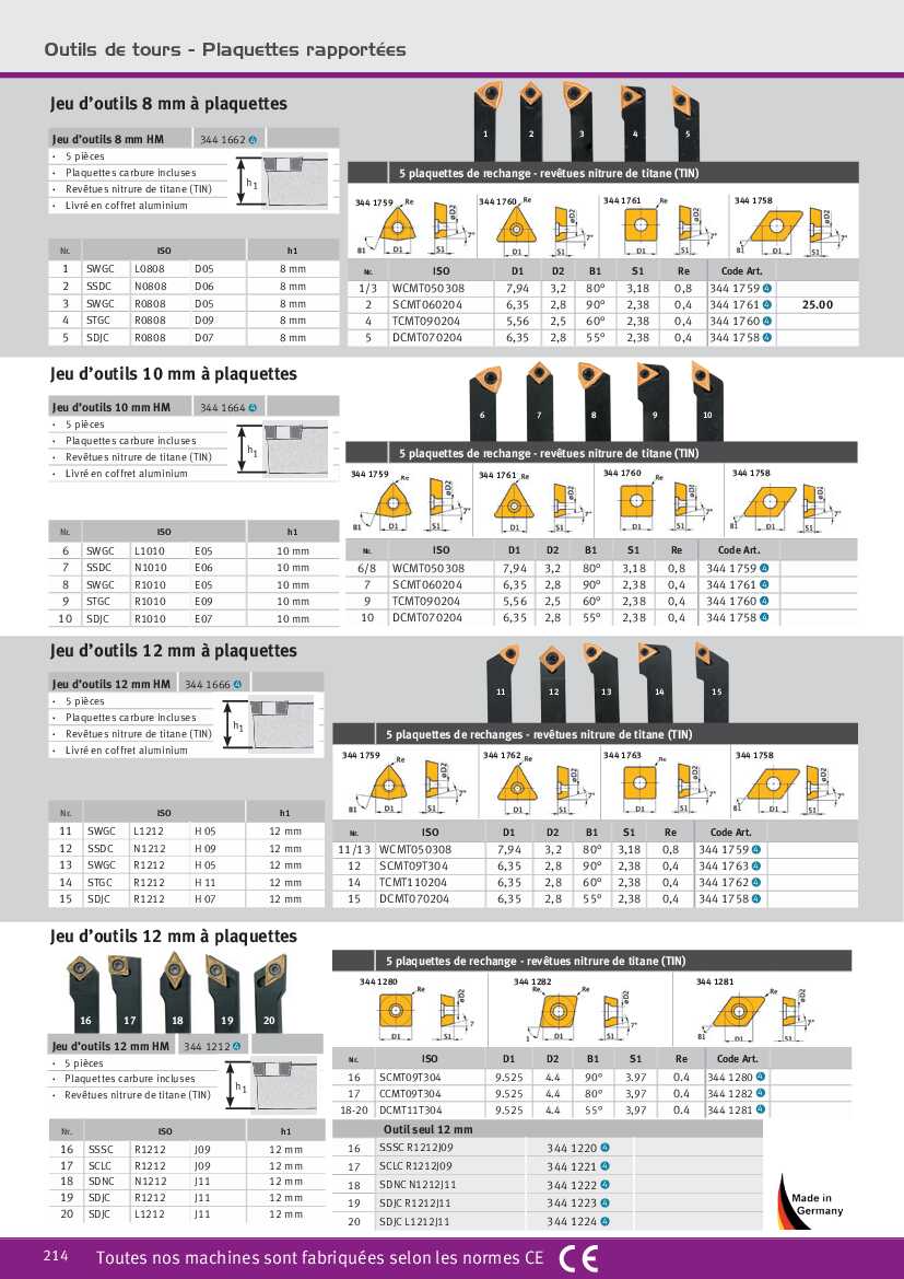 Spécification: Jeu de 5 plaquettes ISO TCMT110204Optimum