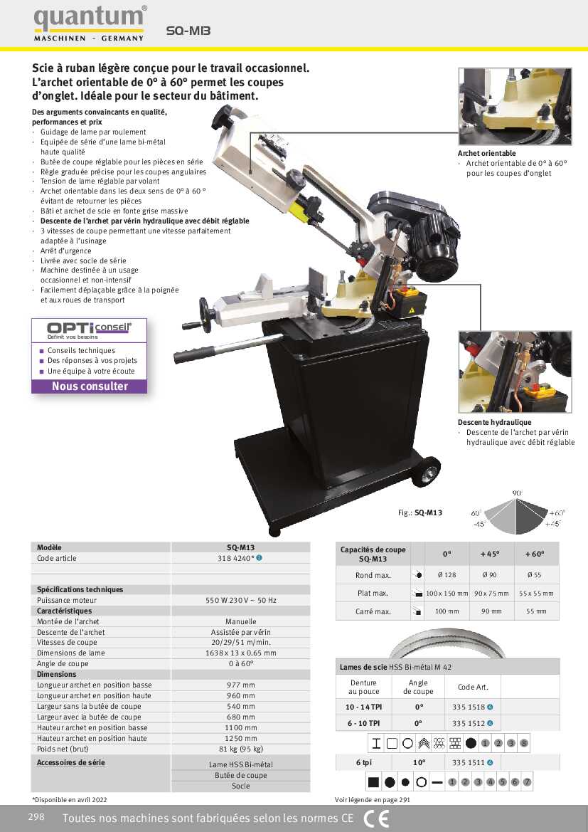 Ajouter au comparateur - Compatible avec les scies à ruban Optimum S 121 G / S 122 G et S 130 GH / S 131 GH