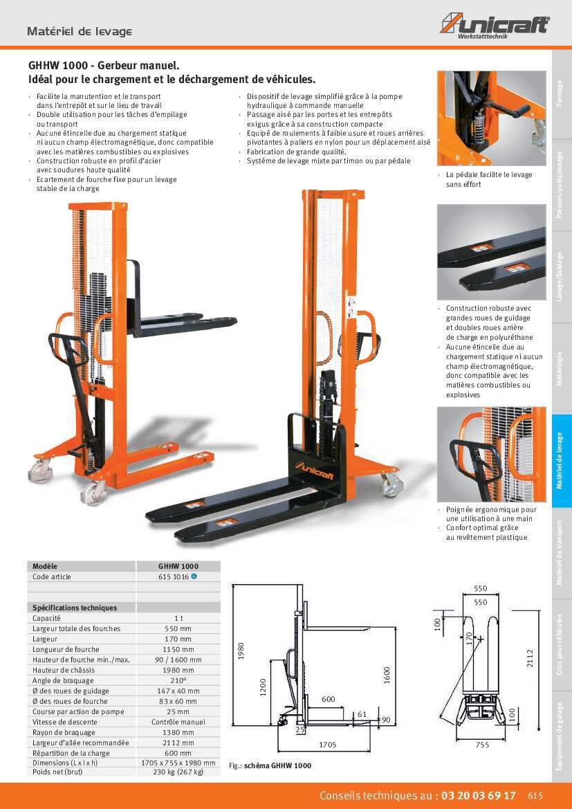 Spécification: Matériel de levage Unicraft Gerbeur manuel GHHW 1000