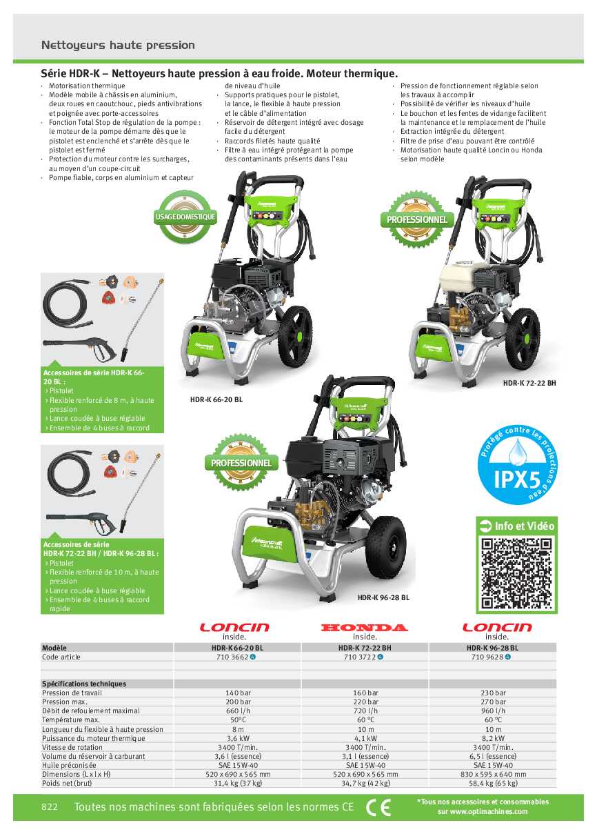 Nettoyeurs à haute pression à l’eau froide HDR-K 96-28 BL. Moteur thermique.