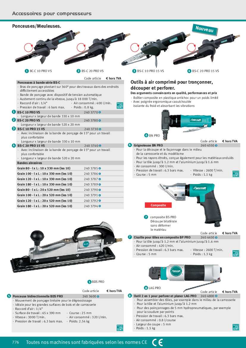 - Air consommé : 420 l/min.