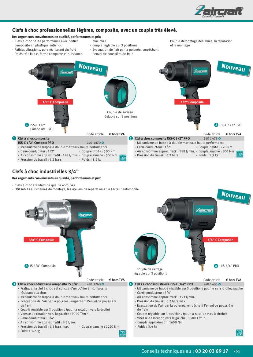 Spécification: Outil pneumatique Aircraft Clef à choc composite ISS-C 1/2 » Compact PRO