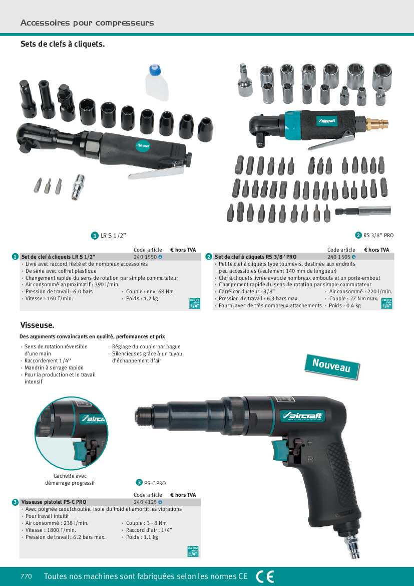 Spécification: Outil pneumatique Aircraft Coffret clef à cliquet LR S 1/2″