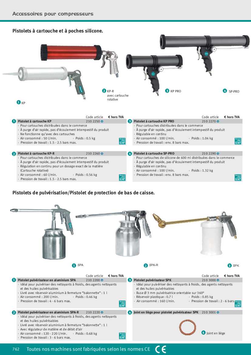 - Air consommé : 100 l/min.