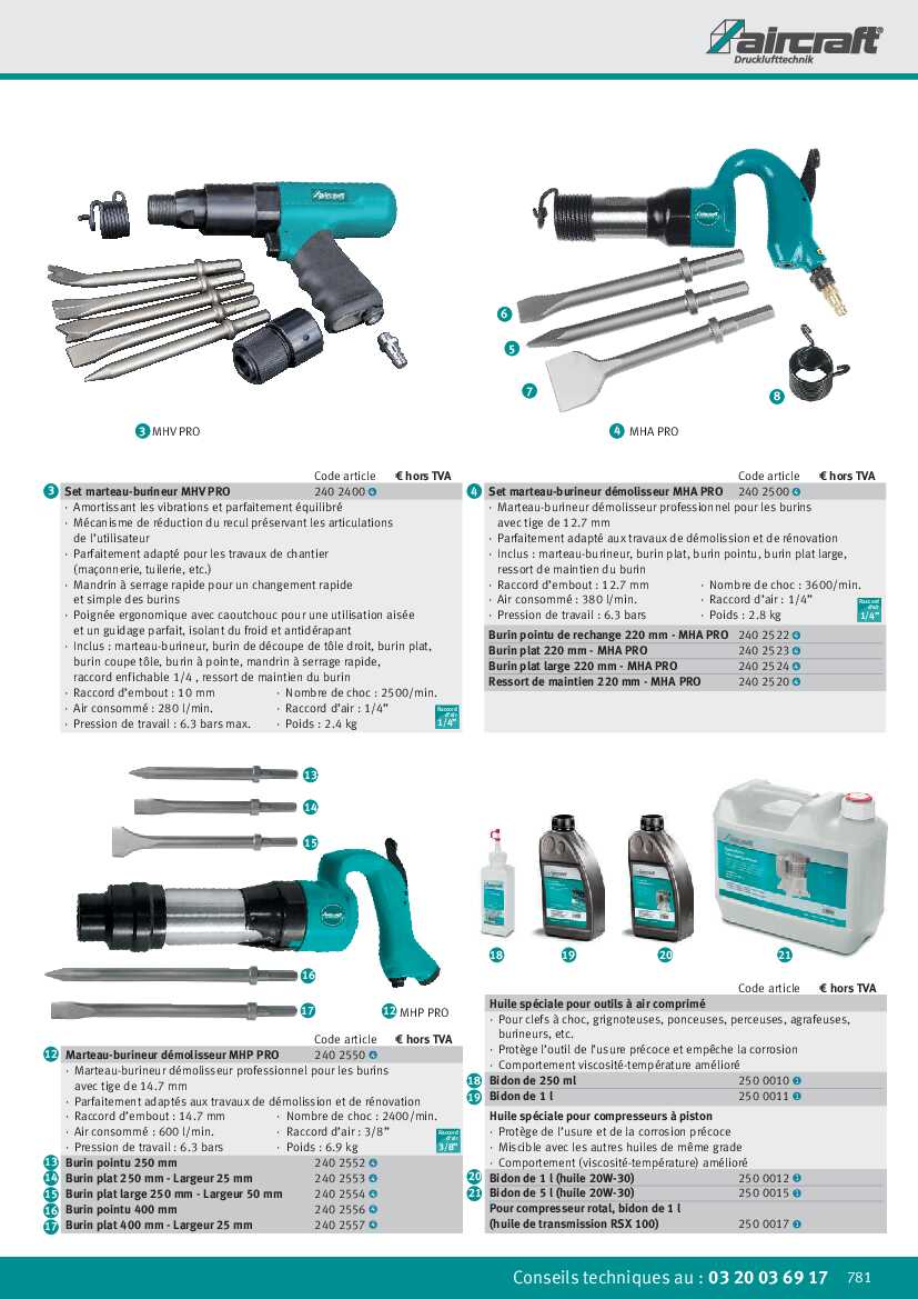 - Air consommé : 600 l/min.