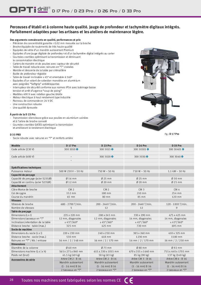 Spécification: Perceuse à colonneOptimum D 26 pro (400V)