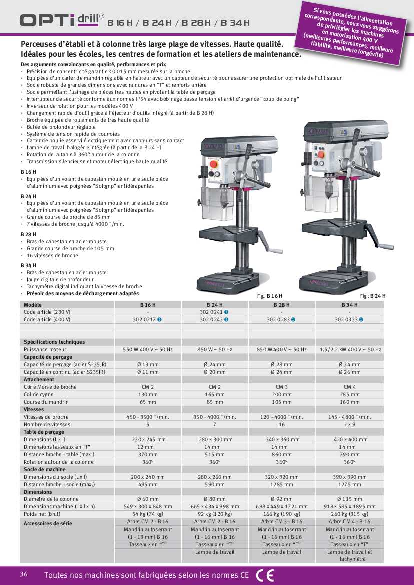 Spécification: Perceuse d’établiOptimum B24 H (230 V)