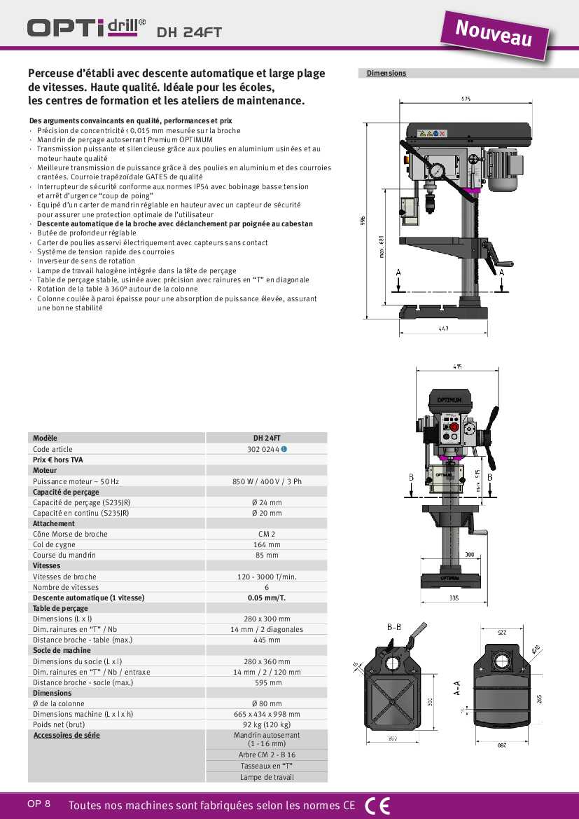 Spécification: Perceuse d’établiOptimum DH 24FT