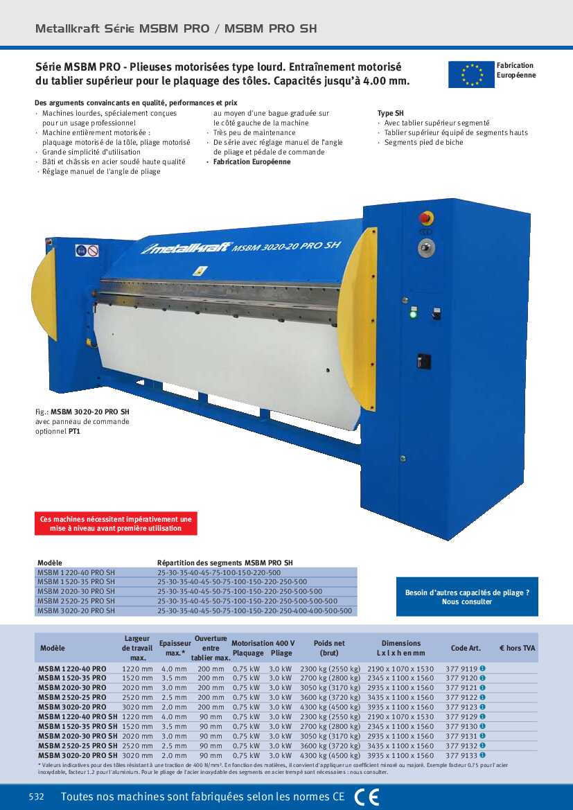 Spécification: Plieuse motorisée type lourd Metallkraft MSBM 2520-25 PRO