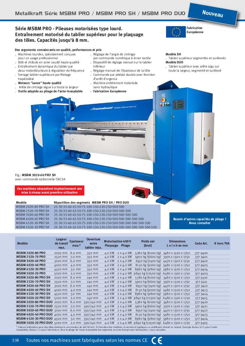 Spécification: Plieuse motorisée type lourdMetallkraft MSBM 2520-70…