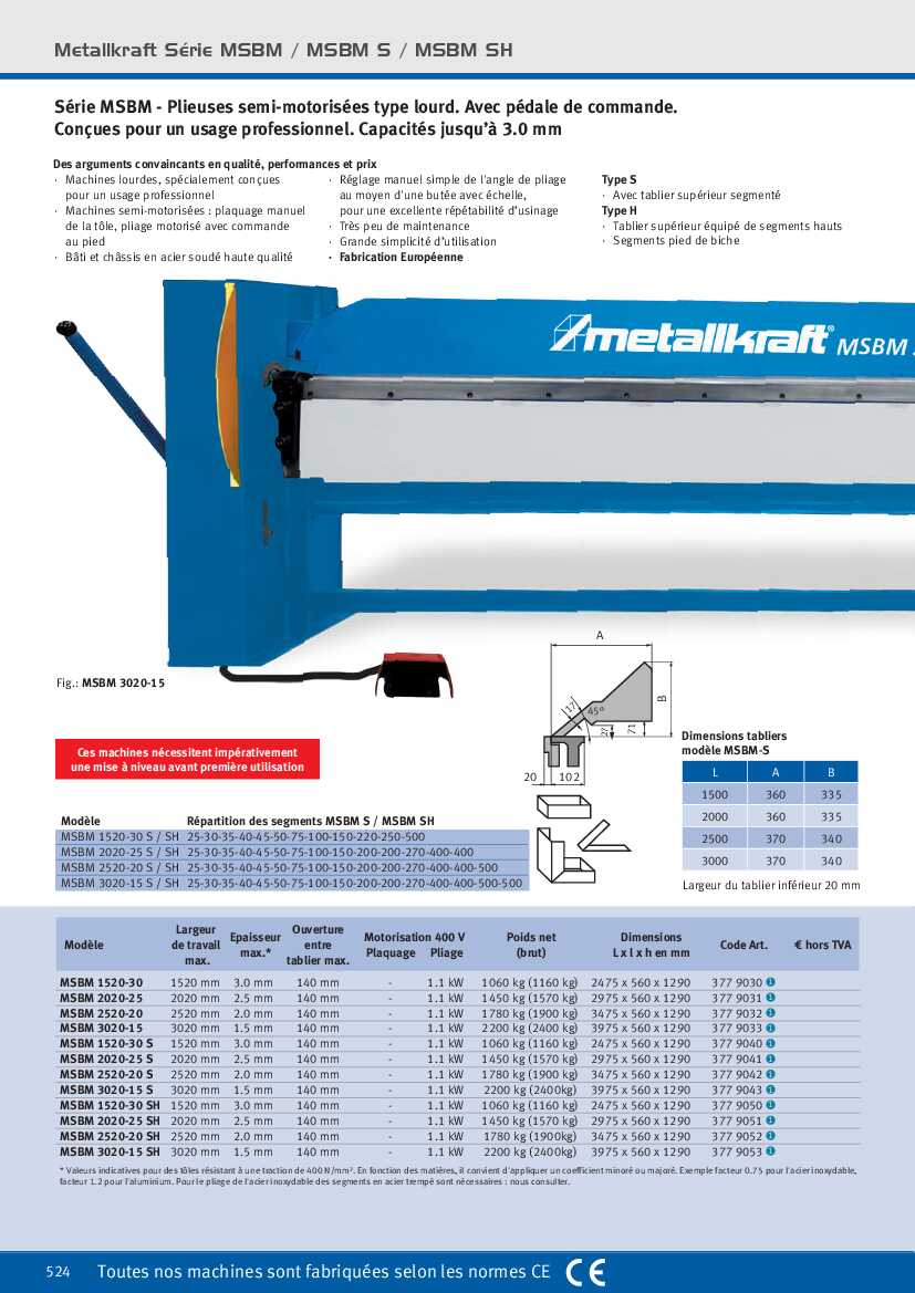 Spécification: Plieuse semi-motorisée Metallkraft MSBM 2520-20 SH