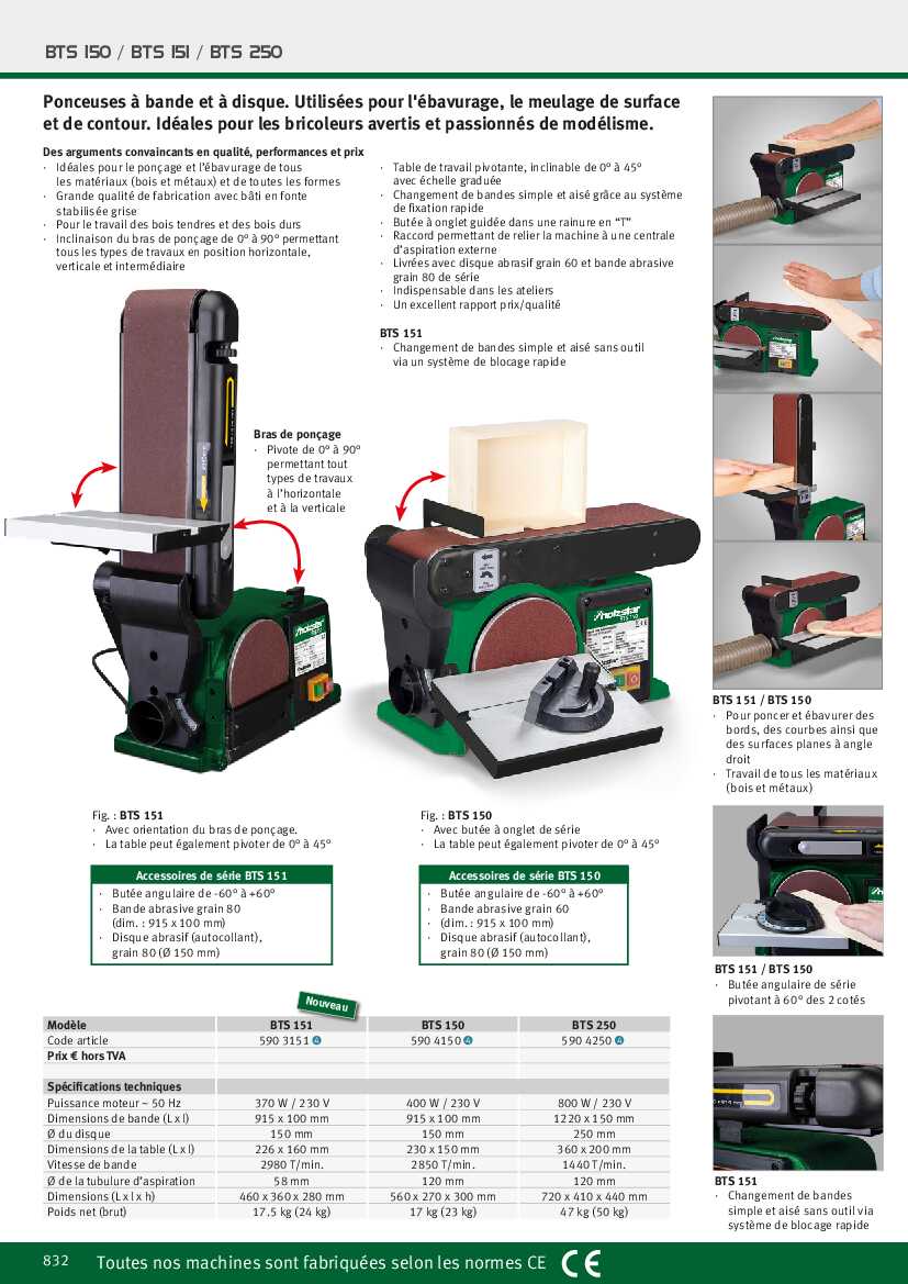 - Livrées avec disque abrasif grain 60 et bande abrasive grain 80 de série