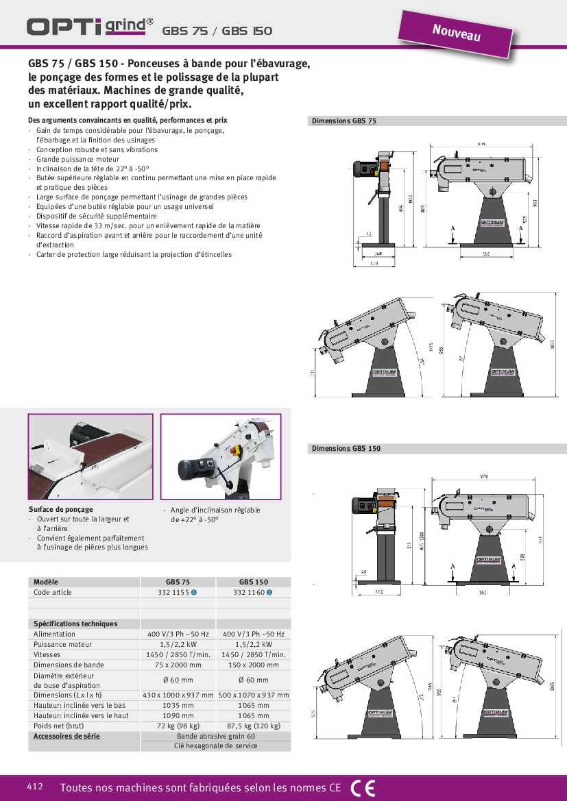 GBS 75 / GBS 150 – Ponceuses à bande pour l’ébavurage, le ponçage des formes et le polissage de la plupart des matériaux. Machines de grande qualité, un excellent rapport qualité/prix.