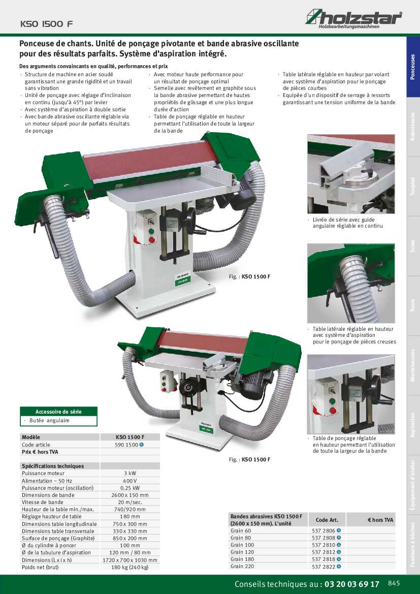 Spécification: Ponceuse de chants Holzstar KSO 1500 F