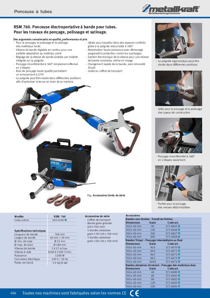RSM 760. Ponceuse électroportative à bande pour tubes. Pour les travaux de ponçage, polissage et satinage.
